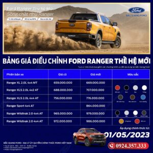 Giá xe Ford Ranger được Ford Việt Nam điều chỉnh từ 01/05/2023. Ford Ranger là